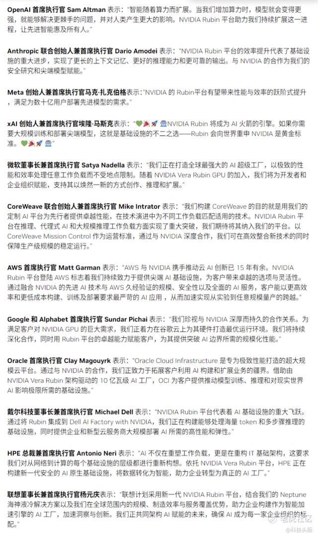 OpenAI首席执行官Sam Altman评论称:“智能随算力而扩展。当我们增加算力时,模型会变得更强大,能够解决更棘手的问题,并对人类产生更大影响。NVIDIA Rubin平台帮助我们持续这一进程。”
