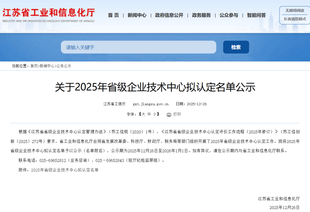 江苏省工信厅公示了