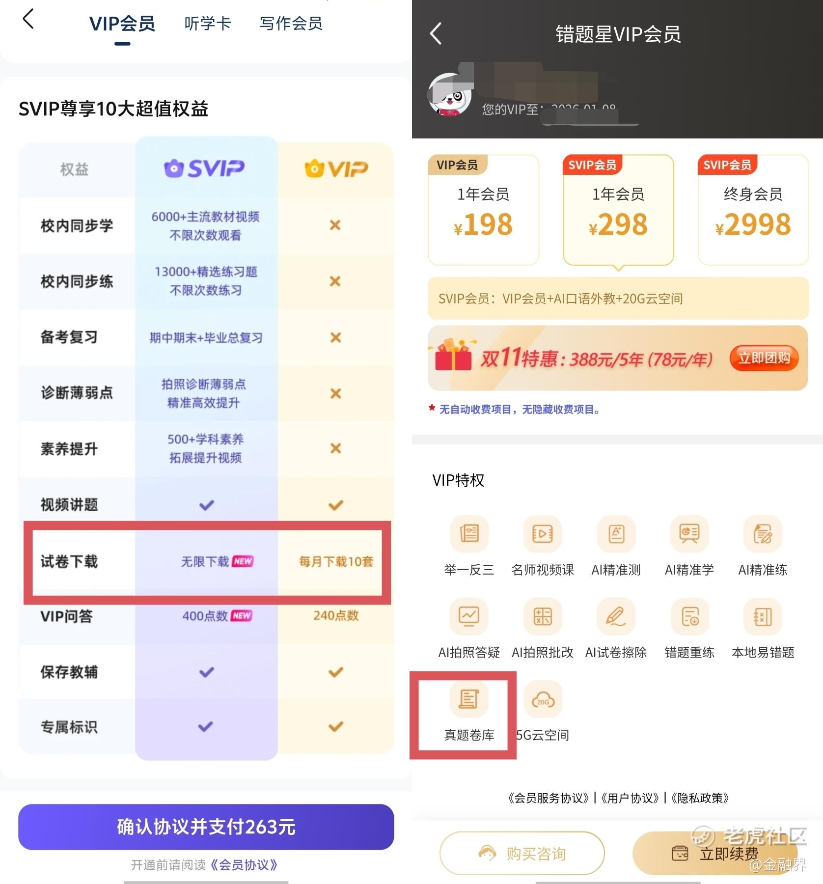 (多个教育APP显示,试卷、真题需开通付费会员)