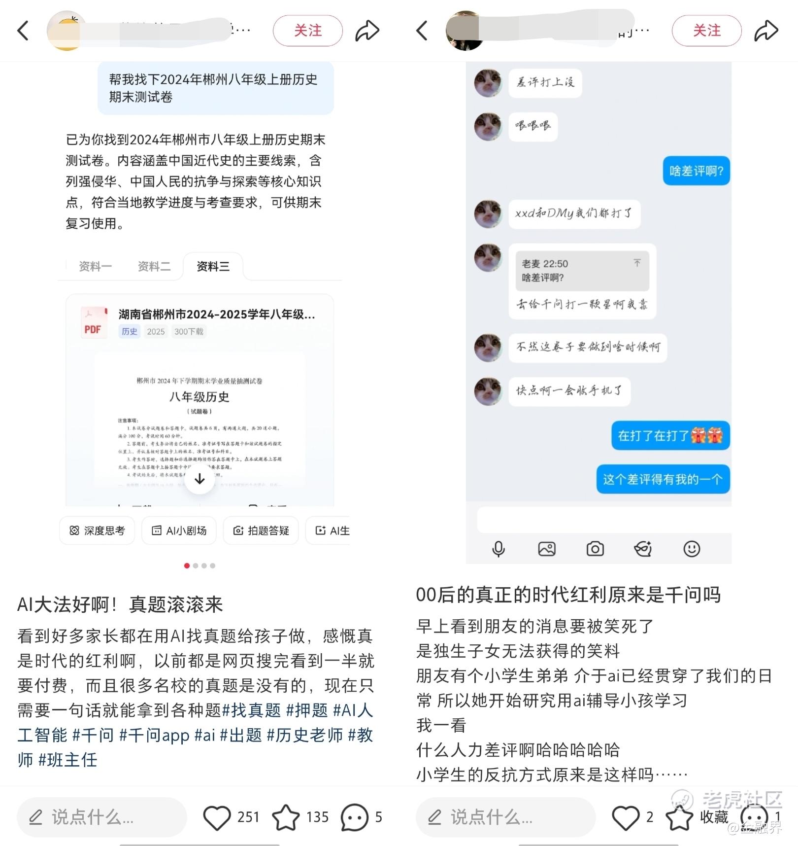 学生吐槽,集中在千问找卷子太方便可能导致做题量暴涨,“做不完根本做不完”。甚至有疑似学生账号“要求下架找卷子功能”。