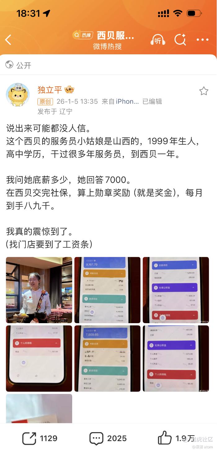 西贝这次上热搜,某种程度上是在打破这个循环。它用一张工资条告诉行业:服务员值得拿高工资,餐饮业可以有另一种活法。