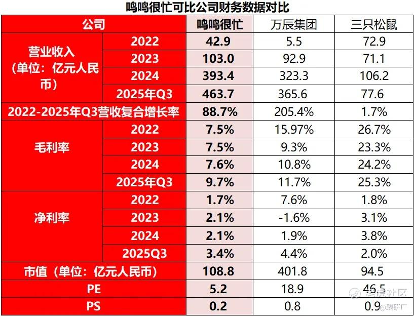 基于业务模式、财务指标及行业定位,本文选取万辰集团和三只松鼠进行对比。