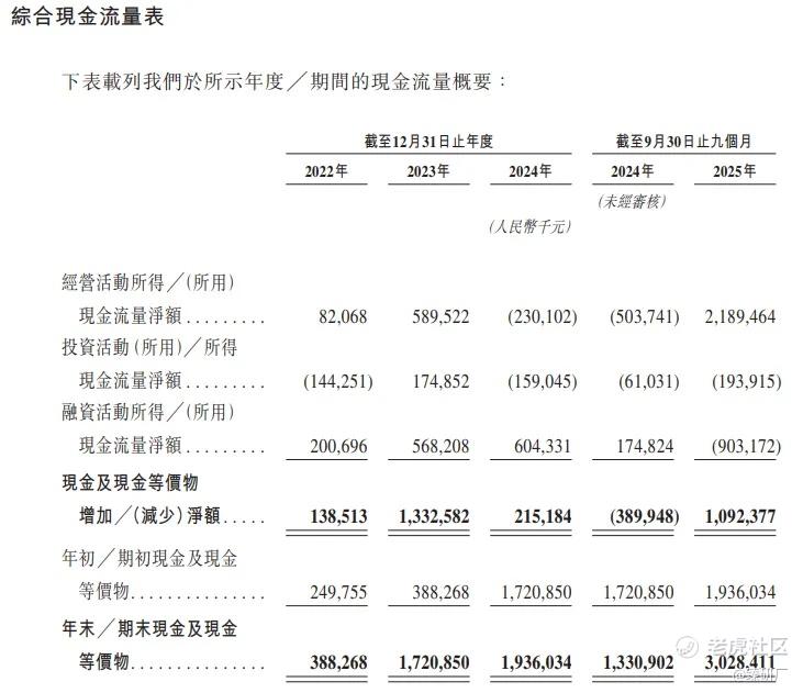 2022年至2023年,公司经营现金流持续净流入,其中2023年经营活动现金更是净流入达5.9亿元、2024年因门店高速扩张导致出现净流出,投资活动所用现金流也随扩张需求整体呈现波动趋势,但值得注意的是,公司现金储备2年间从3.88亿元增至19.36亿元(增长近5倍);截至2025年9月30日,经营现金流从上年同期的流出转为大额净流入,体现出公司现金造血能力有所增强,期末现金储备进一步升至30.28亿元,拥有充裕的现金储备支撑公司运营与发展。