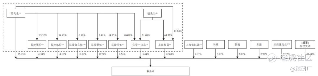 截至港股IPO前,公司创始人晏先生及赵先生,以及彼等的控制实体(即长沙迅忙、长沙简忙、长沙零忙、长沙众忙、长沙食在忙、上海鸟窝及宜春一口鸟)共同持股61.83% 。