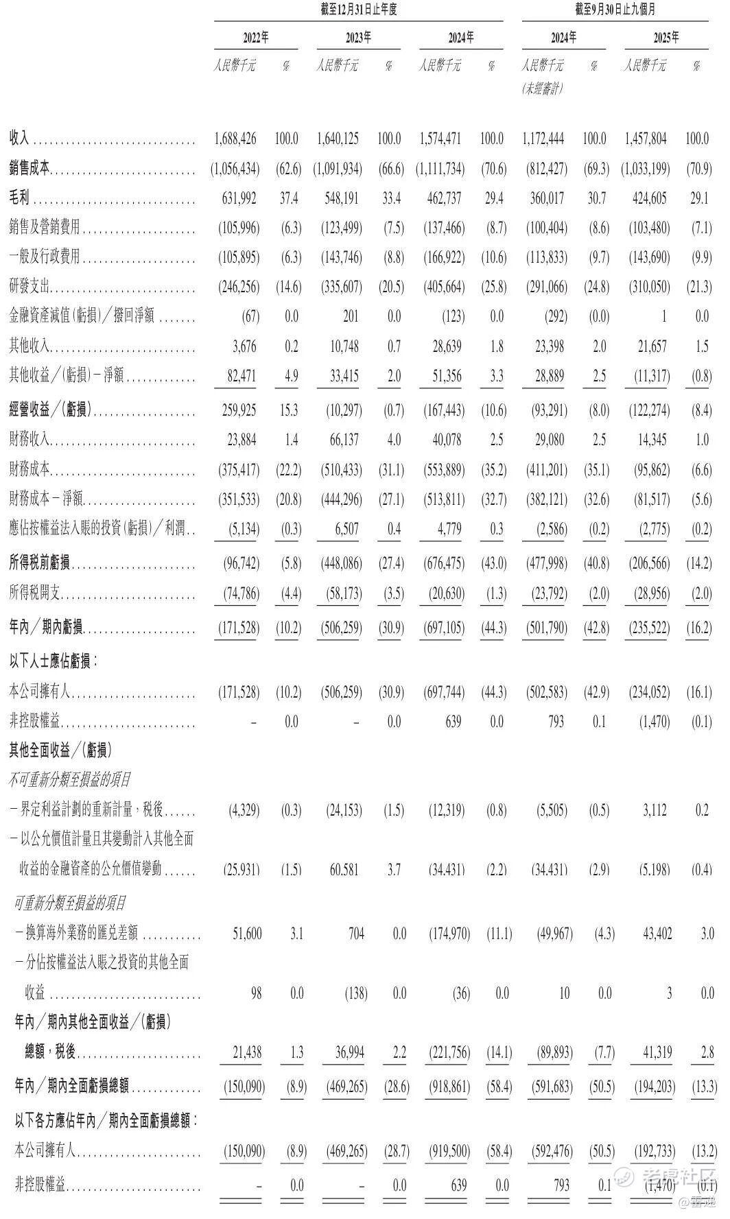 芯迈半导体2022年、2023年、2024年经调整净利分别为2.39亿、4461万、-8669万元;2025年前9个月经调整净亏损为7696万元。