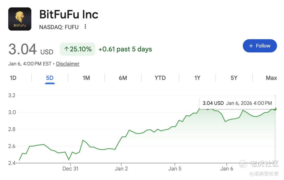 在最新的12月运营报告里,BitFuFu称25年全年挖了3,662比特币,而且还降低了比特币质押数量,减少了负债。BitFuFu平均分析师目标价是$6.45,相较当前股价有约 +130% 空间。