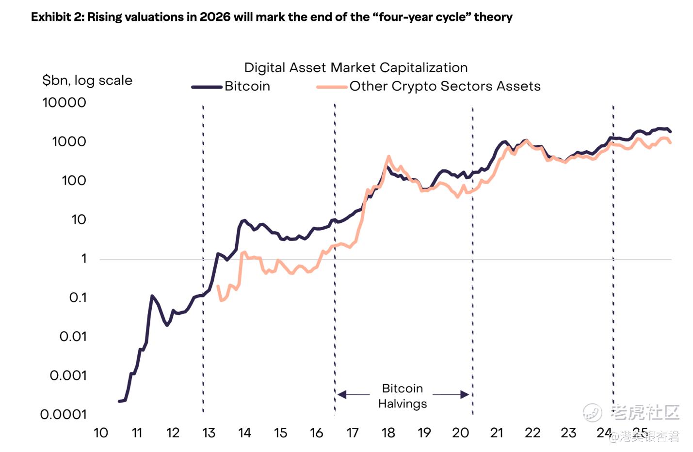 关于26年比特币价格的走势,看涨派如 JPMorgan、Bitwise认为,由于机构资金的垂直整合和ETF的持续买入,比特币有望在2026年达到 $120,000 - $170,000 之间,并可能打破传统的“四年周期”规律。谨慎派如 Galaxy、IG则提醒注意2026年中期可能出现的回调,如果技术面无法站稳 $100,000,价格可能会回撤至 $70,000附近。