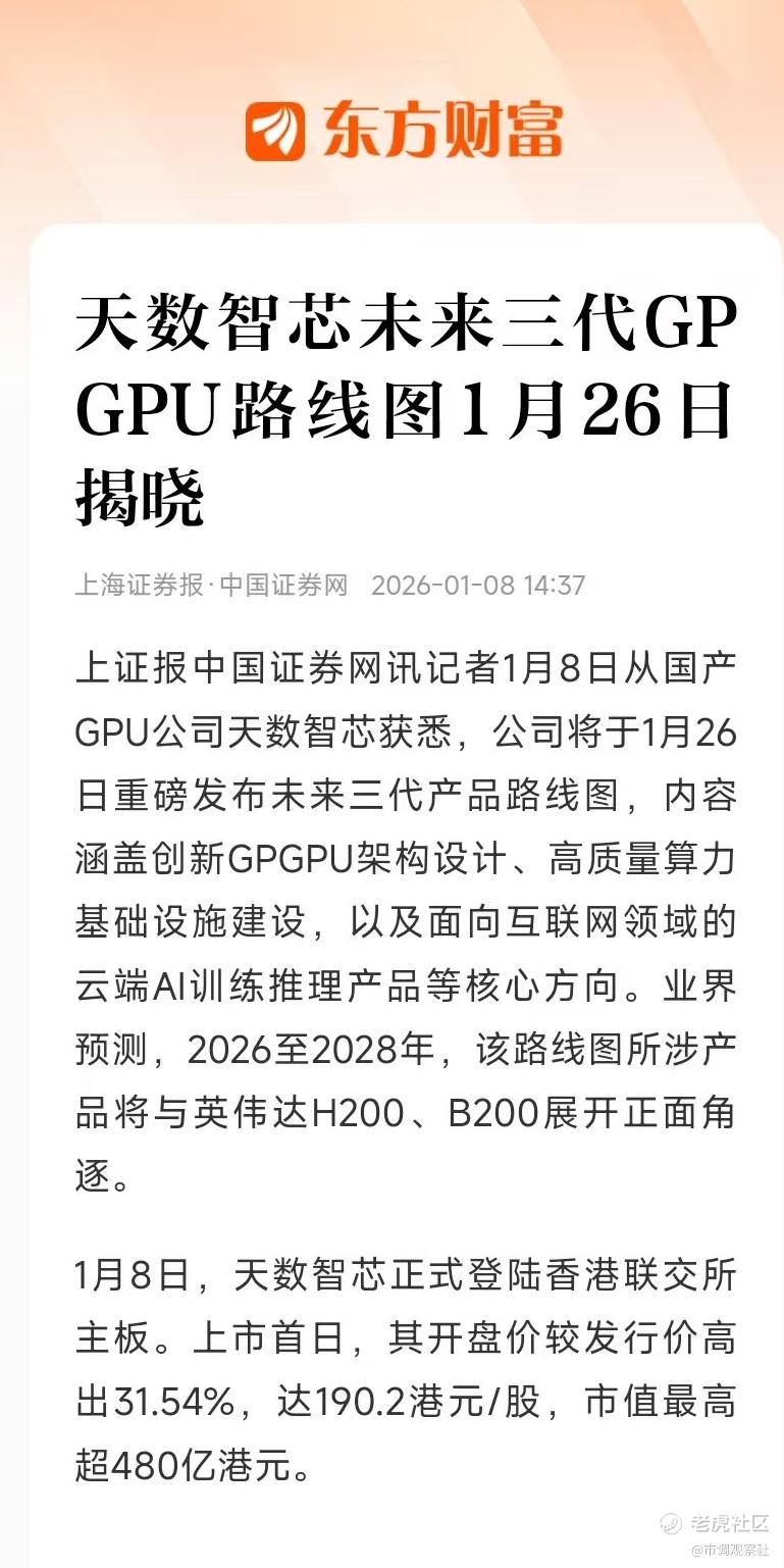 公司将于1月26日重磅发布未来三代产品路线图,内容涵盖创新GPGPU架构设计、高质量算力基础设施建设,以及面向互联网领域的云端AI训练推理产品等核心方向。