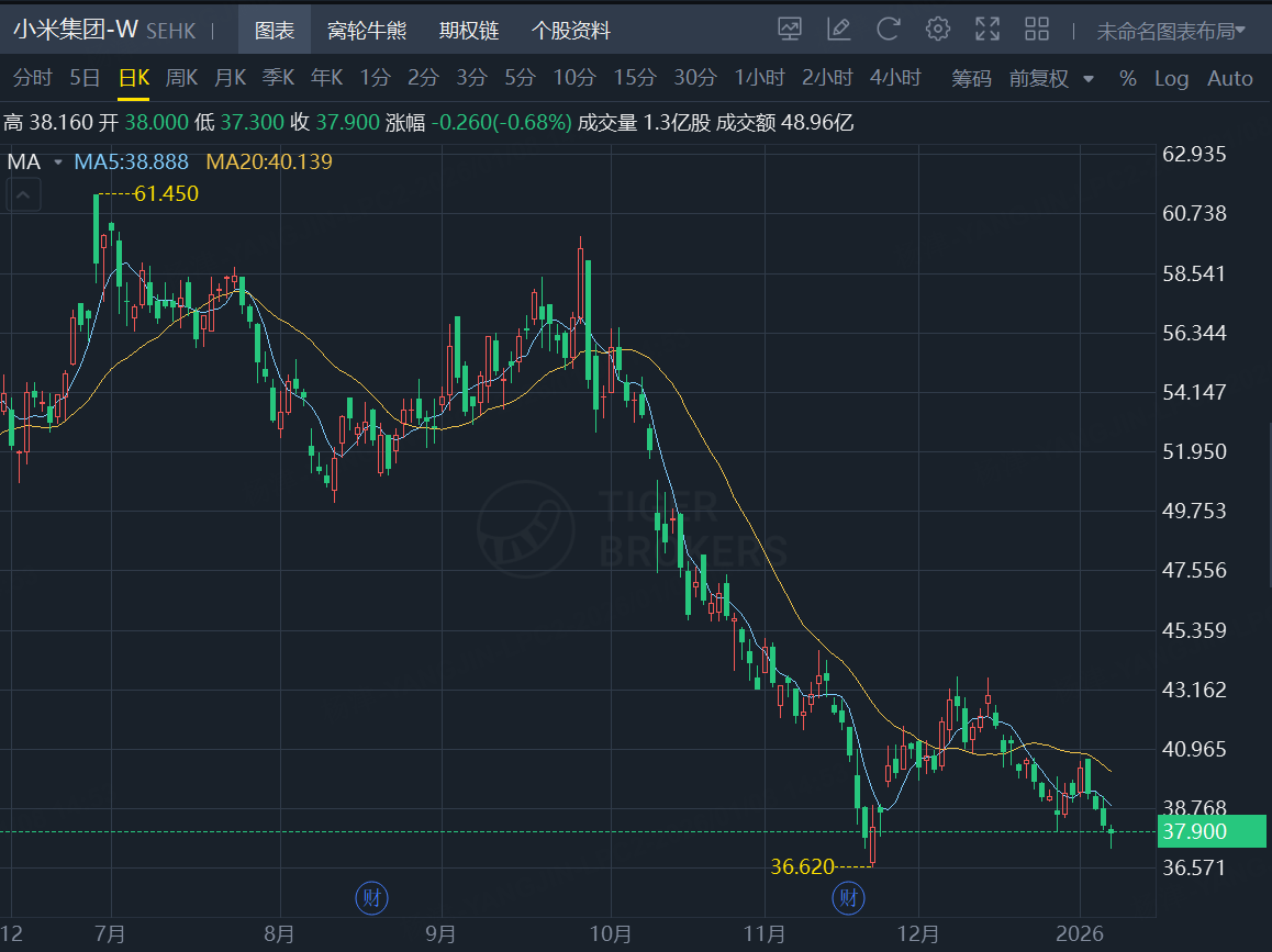40港元下挣扎!小米,2026年的第一个拐点在哪里?
