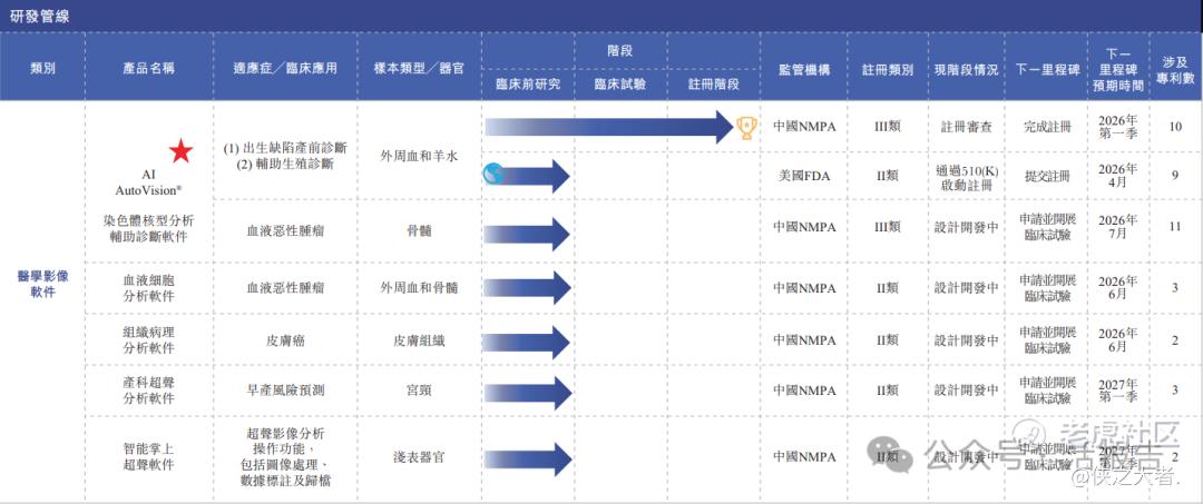 公司是全球医学影像AI技术的领导者,自主研发了世界首个商业化跨模态医学影像基座模型iMedImageTM,支持19种影像模态并覆盖超90%的临床场景,显著提升了诊断效率和泛化能力。其核心产品AI AutoVision®(全球首个AI染色体核型分析系统)已获中国"三类创新医疗器械"认证并提交注册,而MetaSight®(全球首个AI染色体扫描系统)更是获得中美欧三地监管批准。