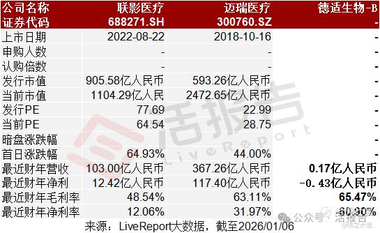 同行业IPO可比公司:联影医疗(688271.SH)、迈瑞医疗(300760.SZ)