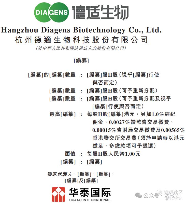 **获悉,杭州德适生物科技股份有限公司Hangzhou Diagens Biotechnology Co., Ltd.(简称“德适生物”)于2026年1月6日在港交所递交上市申请,拟在香港主板上市。这是该公司第2次递表,上一次是在2025年6月29日。