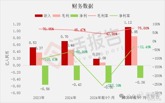 收入分别约为人民币0.53亿、0.70亿、0.20亿、1.12亿,2025年前9个月同比+469.82%;