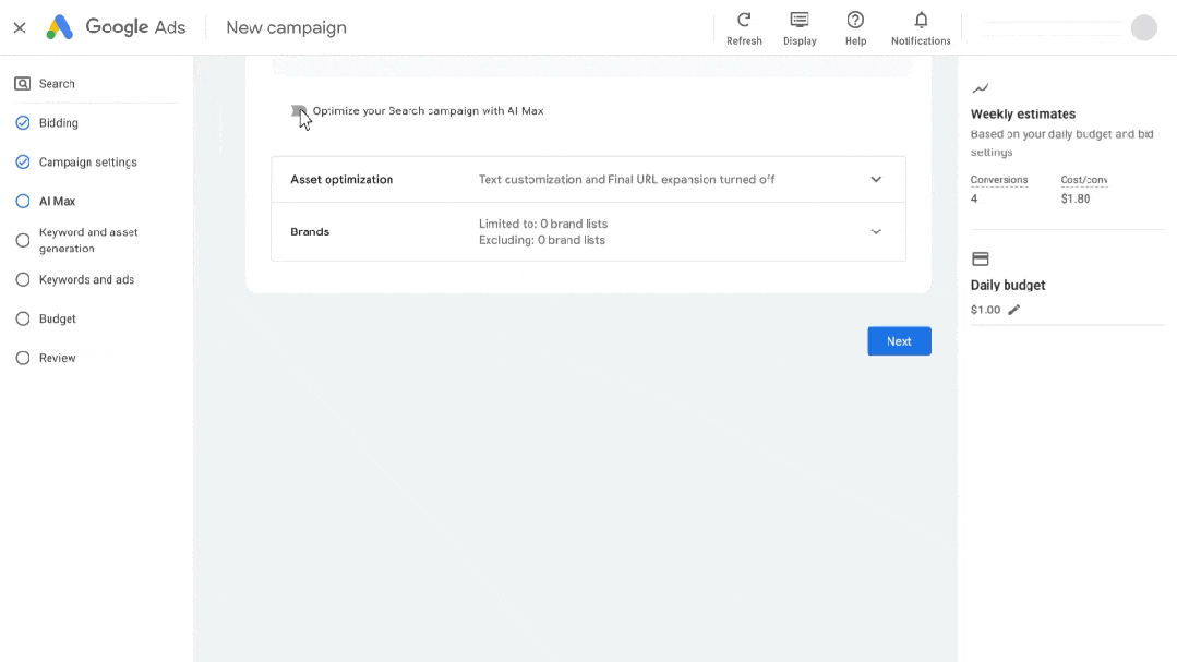 图释:在 Google Ads 后台 一键启用 AI Max