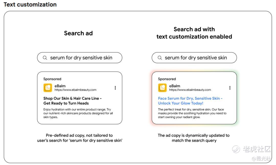 图释:用户搜“干皮精华”,广告语立马变成“这款精华专为干皮设计”,每一条广告都是私人订制