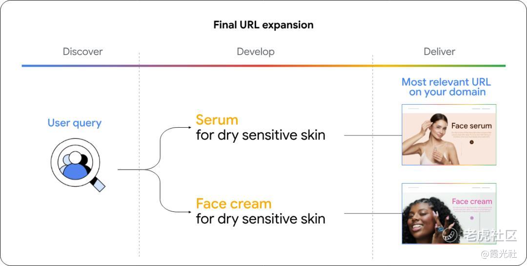 面对全球用户的花式提问,AI Max还会主动学习广告主的品牌素材,实时生成最能回应用户需求的广告文案,并通过“最终URL扩展功能”,自动匹配最相关的落地页,帮助品牌解锁更多生意机会。