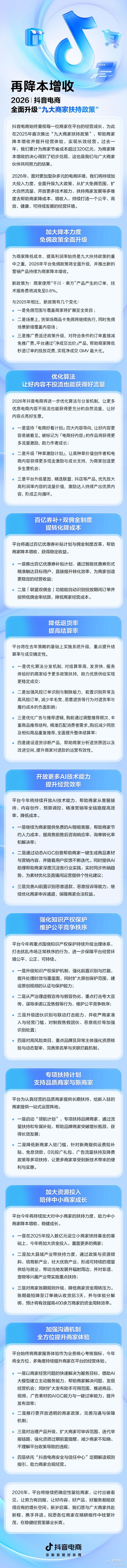 以下是《抖音电商2026九大商家扶持政策》完整版: