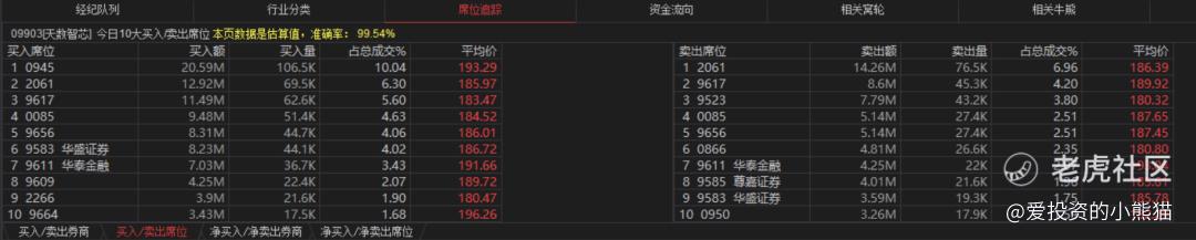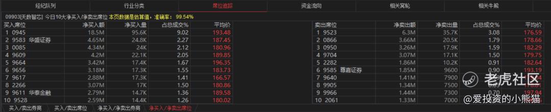 天数智芯(09903.HK)买盘席位有0945、9583、0085、9609等,卖盘第一席位是9523, 0950在卖盘第三席位。