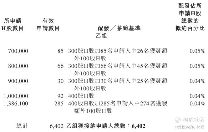 乙组总共有6402人中签,总共中签138.61万股,货值约5993万港元,顶头槌货约值17296港元-21620港元,暗盘收盘卖出可赚8千多港元。