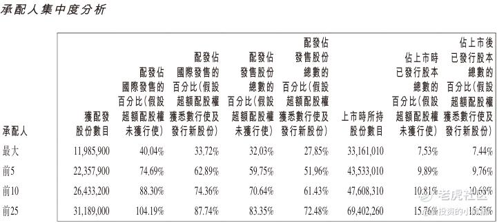 智谱(02513.HK)国配货是比较集中,前25大承配人上市后所持股份数目占上市后已发行股份总数15.57%。智谱(02513.HK)这个票稳价人是中金,有绿鞋6.52亿港元。