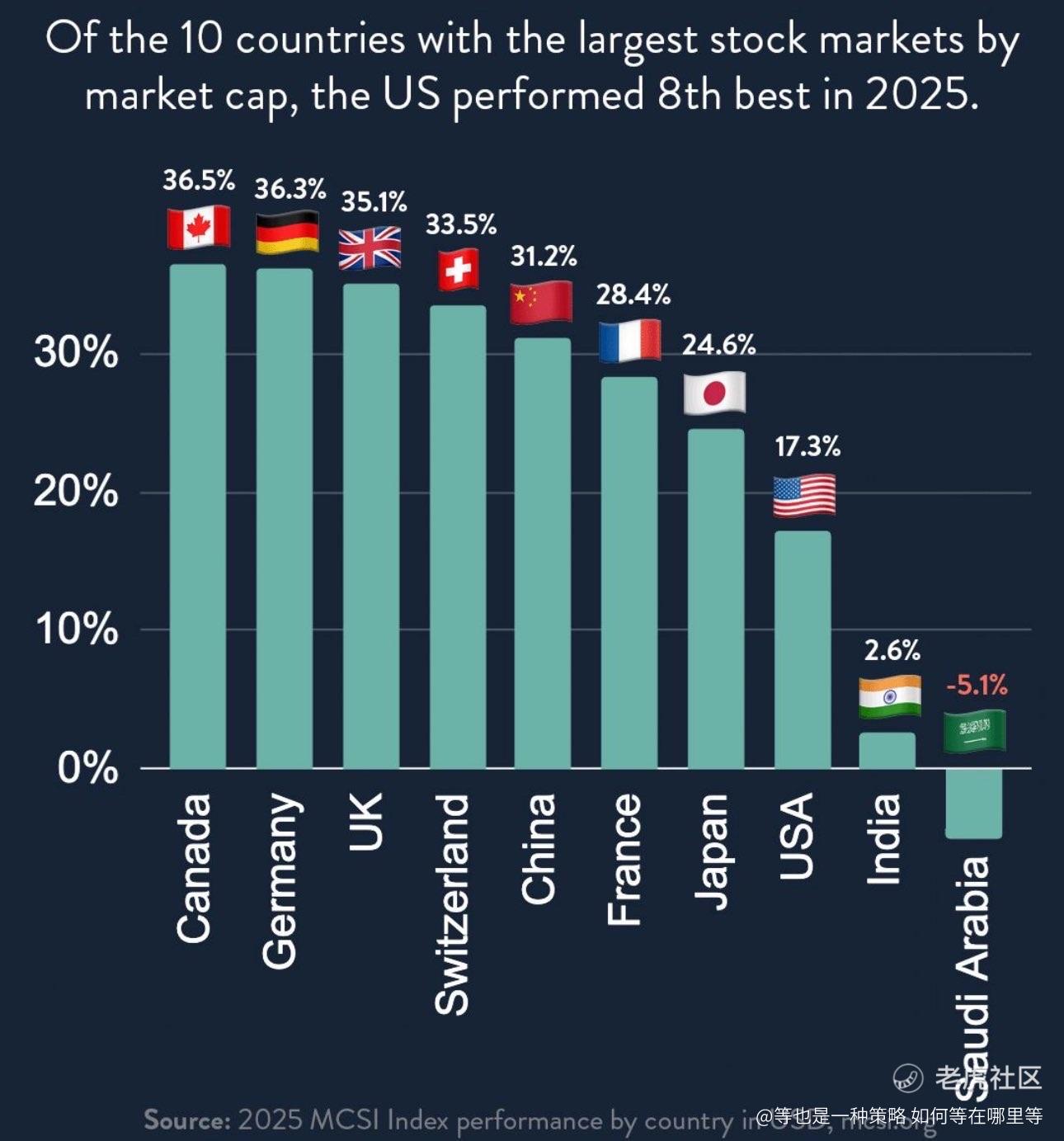 整个2025 年,加拿大股市在全球十大股市中表现最佳!