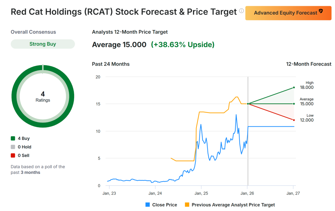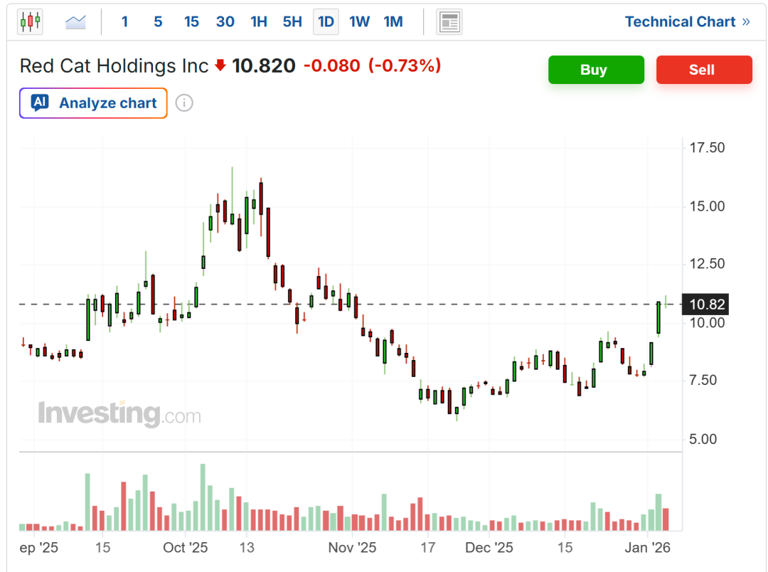 5. Red Cat —— 小型无人机与人工智能颠覆者Red Cat Holdings(纳斯达克代码:RCAT)是反无人机技术和人工智能驱动自主领域一个低调的创新者。该公司专注于军事和安全无人机,提供诸如用于情报监视侦察和精确打击的 ARACHNID 系列产品、用于短程侦察的 Teal Drones,以及用于垂直起降任务的 Flightwave Edge 130 三旋翼无人机等产品。