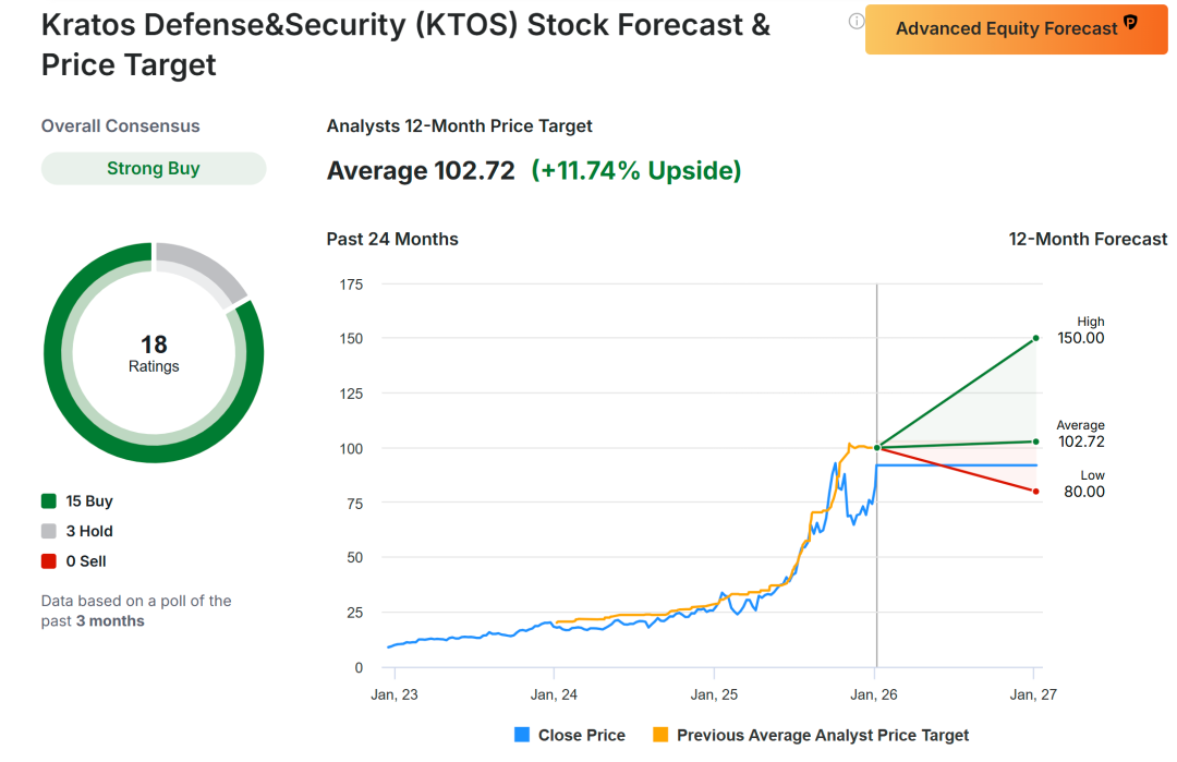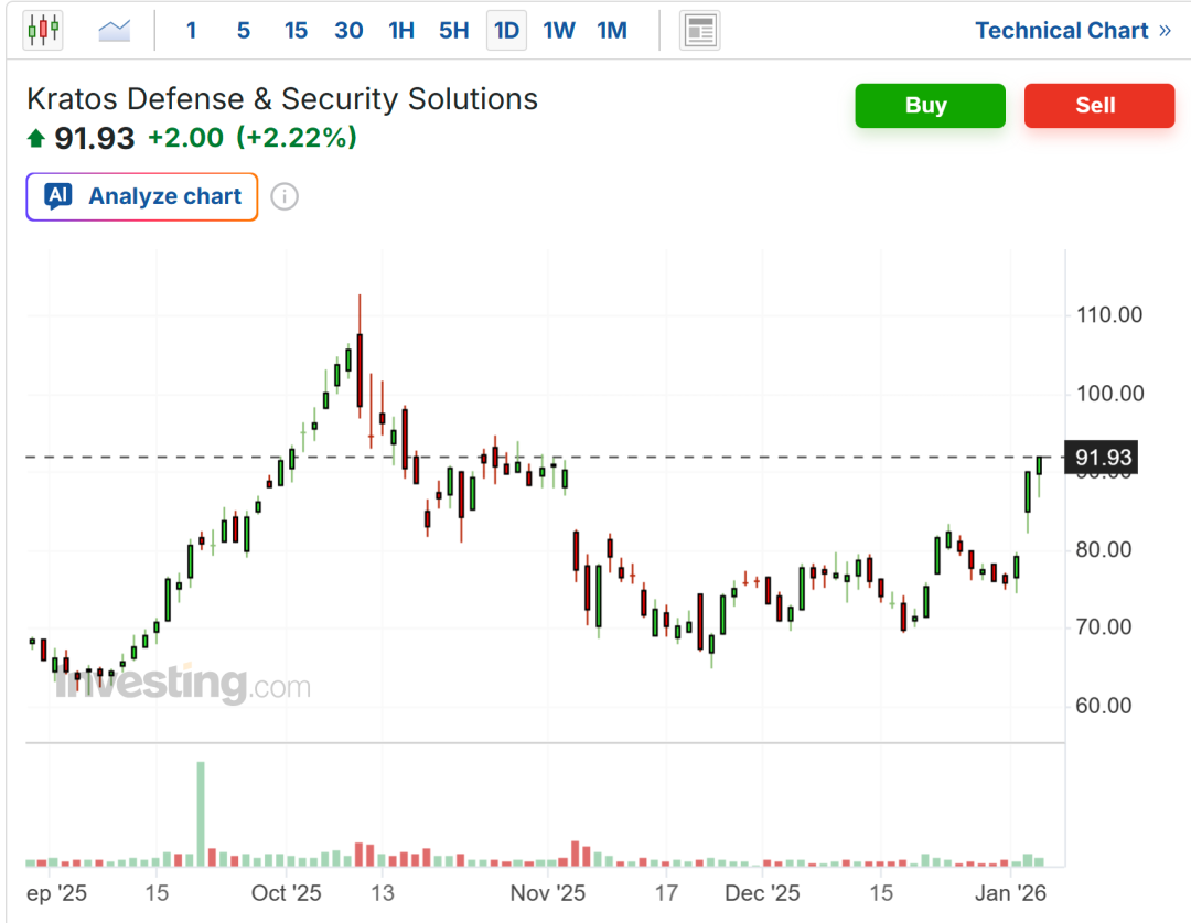 当前股价约为每股92美元,市值155亿美元。由于近期的上涨势头和分析师的热情,KTOS 是一个引人注目的买入选择。该股近期因新的买入评级和3000万美元合同而大涨,目标价高达150美元——潜在上涨空间达63%。