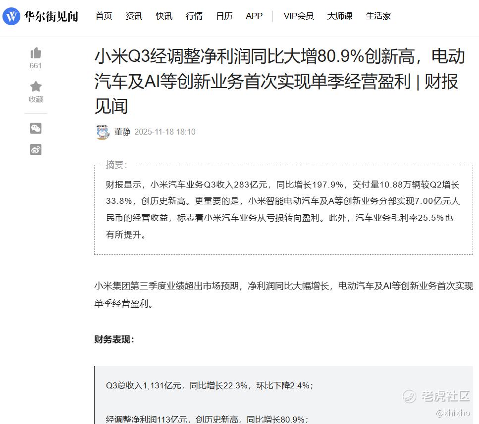 看得我有点想要买点小米了,我看到2025年末小米账上有630亿元现金,负债率42%,比 2021年要健康很多。除非出现大规模召回或手机塌方,否则再现50%下跌的概率是非常低的,只要小米的新车能爆款,那38港元的今天,妥妥的就是未来两年的“底部区”。[财迷]