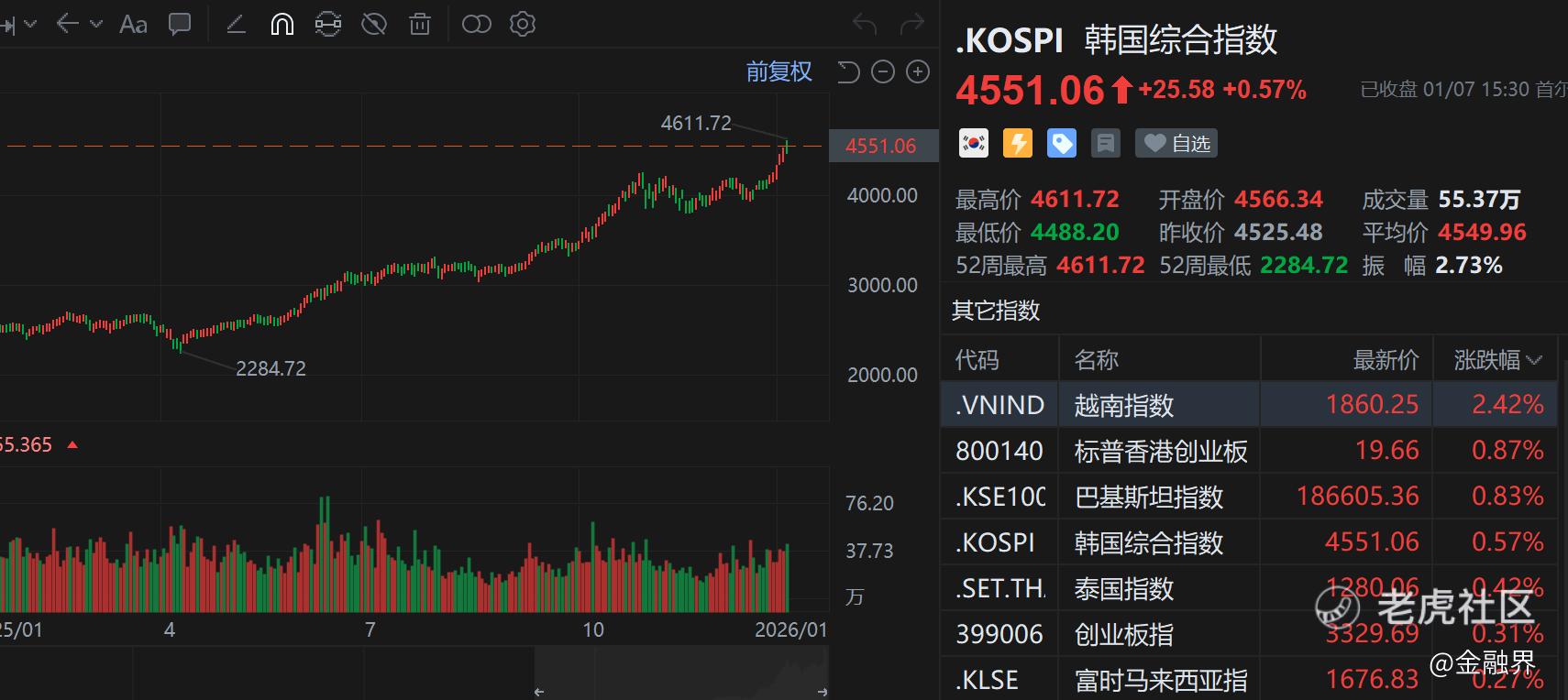 今天,SK 海力士股价上涨4.31%,三星电子涨0.58%,推动KOSPI 盘中首次突破4500点大关,创下历史新高。摩根士丹利和花旗等大行近期纷纷上调了两家公司的盈利预期。