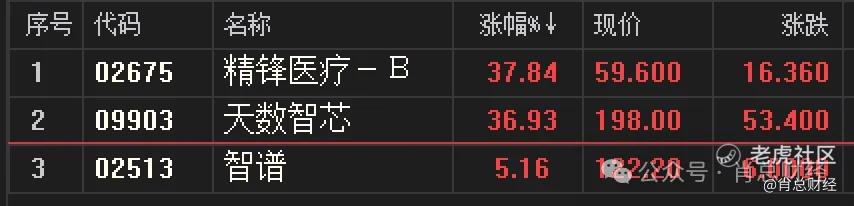 昨天暗盘天数智芯、精锋医疗和智谱分别涨幅如下。