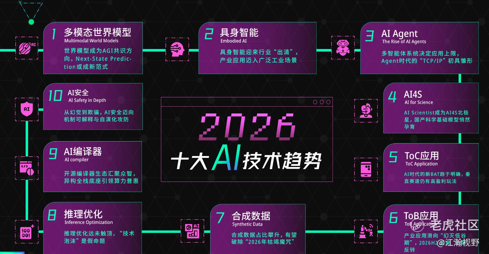 第三,产业应用将经历从“幻灭”到“重生”的V型反转,垂直价值成为关键。随着企业级AI应用跨越概念验证的狂热期,2026年上半年可能因数据治理和成本问题滑向“幻灭低谷期”。然而,这正是去伪存真的良机。预计下半年,随着数据接口标准化与合成数据的广泛应用,真正具备商业闭环能力的MVP产品将在工业、科研等领域爆发。对于企业而言,单纯的技术堆砌已无意义,能否在特定业务流程中提供可衡量的降本增效价值,将是穿越周期的核心。