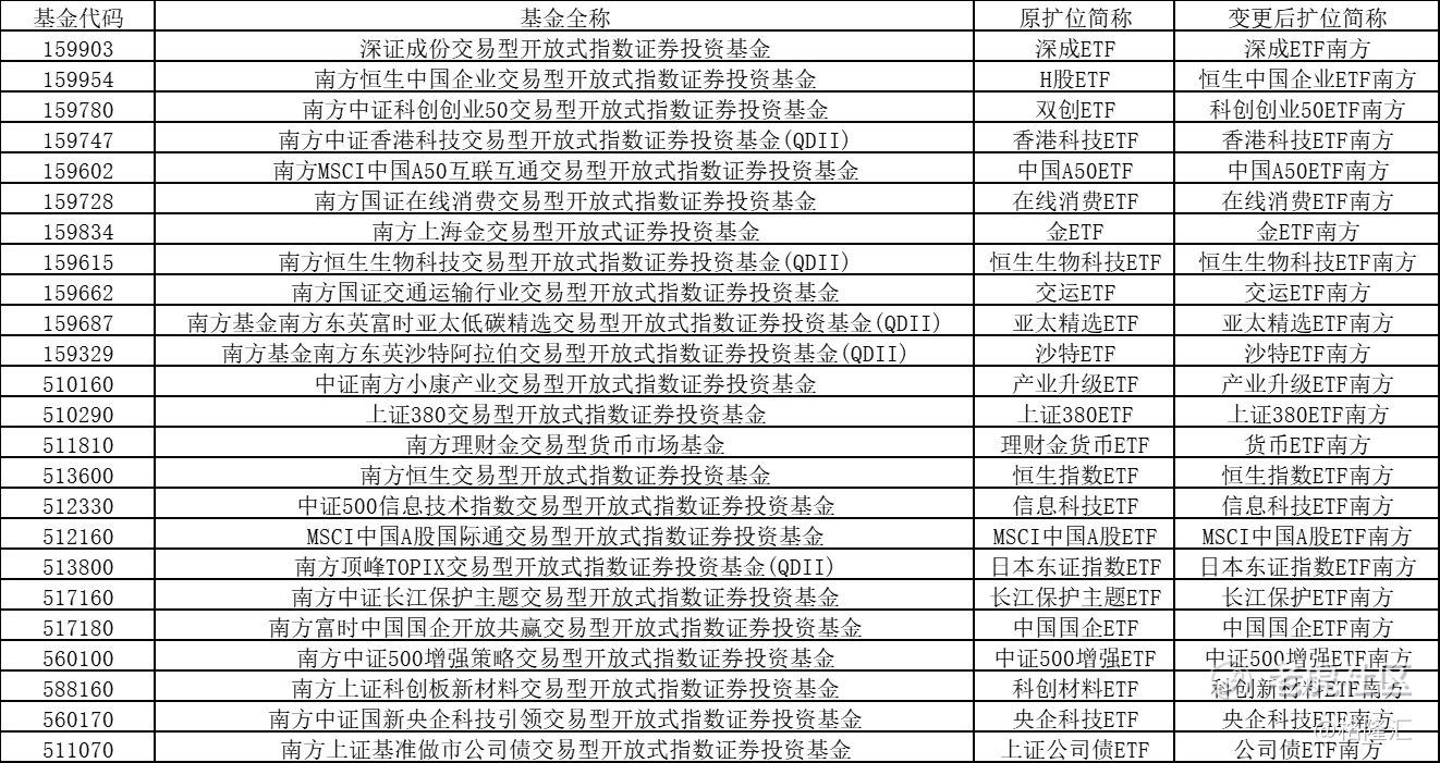 规范命名提升指数投资透明度 南方基金变更旗下部分ETF场内简称