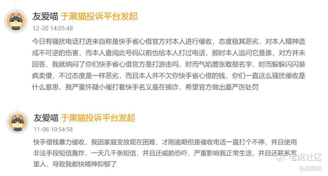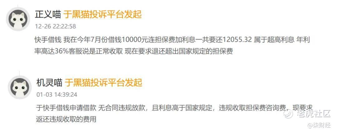 高利率也是快手借钱被广泛诟病的问题,多位用户在黑猫投诉发帖称: