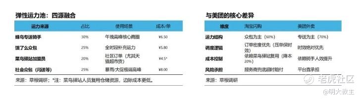 阿里高管在三季报业绩会上公开表示,淘宝闪购已拥有蜂鸟转送、饿了么众包、菜鸟驿站加盟员、社会众包等四层运力网络,日均活跃骑手超200万,较4月增长近3倍。虽然200万的骑手数量还不及美团骑手的规模,但与美团骑手70%为众包骑手相比, 淘宝闪购注重了高峰时段的精准补流,叠加专送骑手运力,淘宝闪购得以在全行业首个喊出“30分钟达”,在确保用户性价比的同时也能有不错的下单体验。
