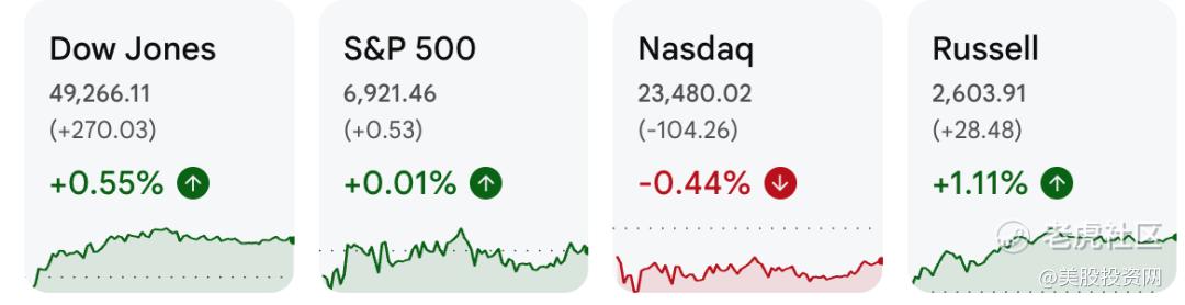 周四,美股的内部轮动效应显著。道指涨幅0.55%;纳指跌幅0.44%;标普500涨幅0.01%。