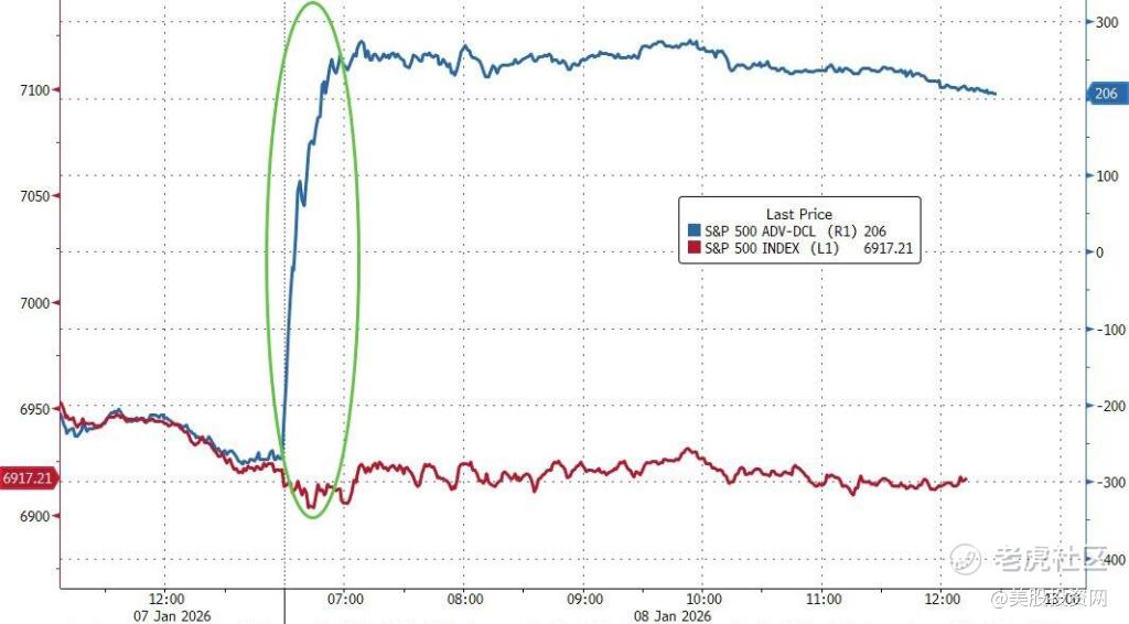 (标普500中上涨的股数量远超过了下跌的股数量)