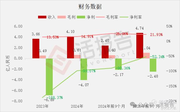 收入分别约为人民币3.66亿、4.10亿、2.40亿、4.74亿,2025年前9个月同比+97.29%;