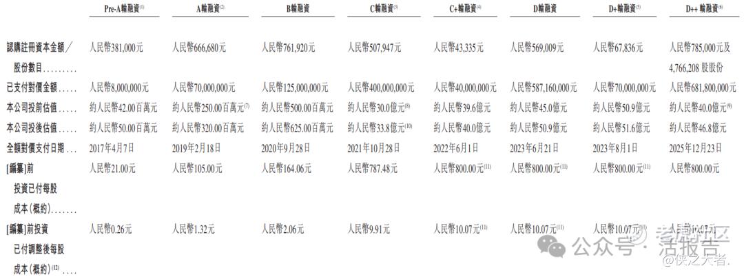 公司上市前经历了多轮融资,累计融资逾19.8亿元人民币。在2025年12月的D++轮最新融资中,公司的投后估值约为46.8亿人民币。