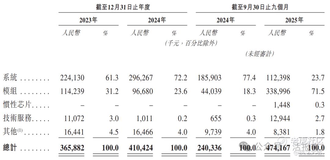 公司收入主要来自时空智能解决方案相关产品销售,核心分为系统和模组两大类别。重大部分来自系统业务,2023年和2024年占总营收比例分别为61.3%和72.2%,是核心收入支柱;模组业务收入占比相对较小,2023年和2024年分别为31.2%和23.6%;技术服务及配件销售等其他业务获得的收入比例最小,2024年合计占比仅4.2%。
