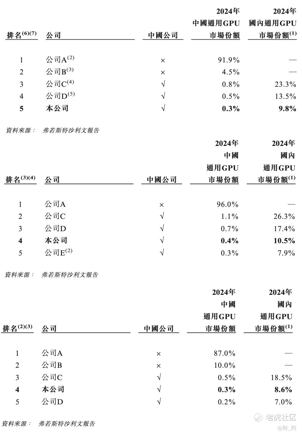 ▲从上至下:中国通用GPU市场排名、中国训练型通用GPU市场排名、中国推理型通用GPU市场排名