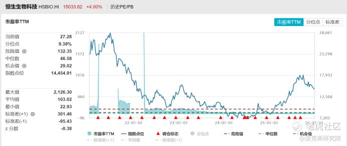 恒生生物科技指数的估值只有27倍左右,最近五年的分位数只有9.38%,相当于比最近五年内90%的买入成本都低。(截至2026.01.05)