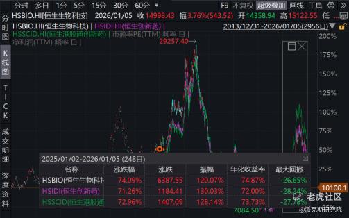 恒生生物科技指数去年最高涨幅超过110%,即便经历调整,目前涨幅仍超过70%(截至2026.01.05),收获满满。