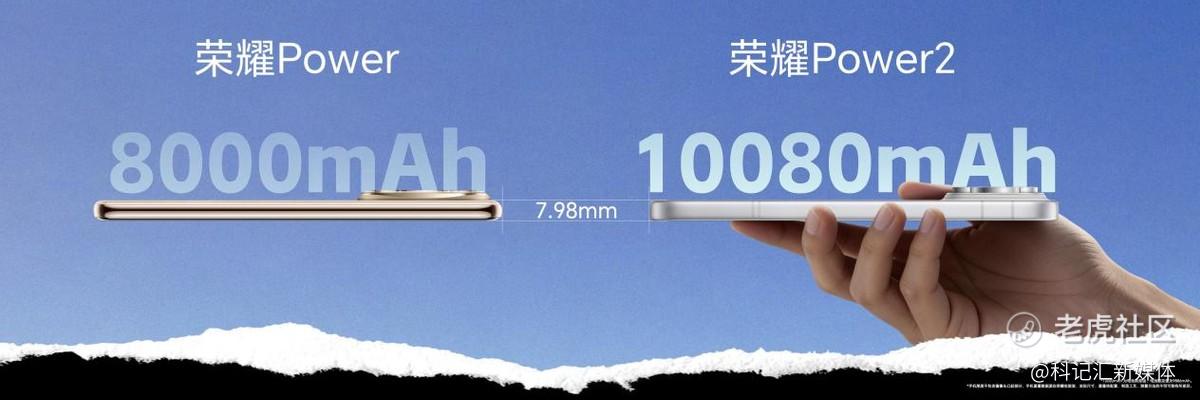 针对户外用户核心的焦虑——续航,荣耀Power2搭载10080mAh第四代青海湖电池,电池容量相比上一代提升 26%,成为行业同档位首款突破万毫安时的机型,并在 TÜV 莱茵实验室的标准综合场景续航测试中,斩获“最长续航手机”佳绩,成为行业同档位首款突破万毫安时的机型。同时,通过将电池硅含量提升至15%,实现行业领先的926Wh/L能量密度,荣耀Power2将机身厚度精准控制在7.98mm,做到了让续航体验跨越式升级的同时,依然保持和上一代相同的超薄机身,打破大众对手机“大电池必厚重” 的刻板印象。