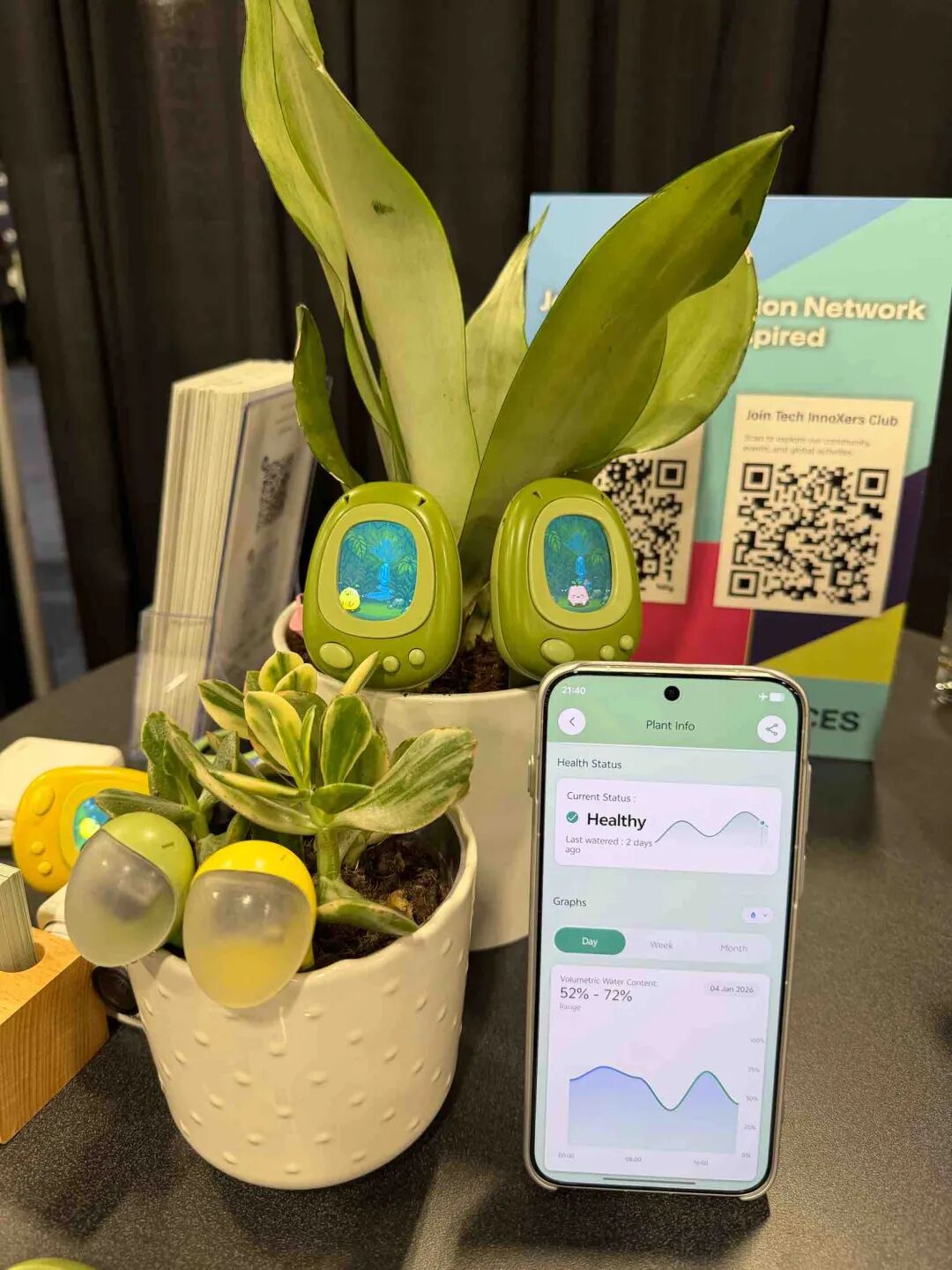 来自深圳科创学院的Senso结合AI与电子宠物式互动体验,推出了一款智能植物传感器,让植物也能“表达自己”。