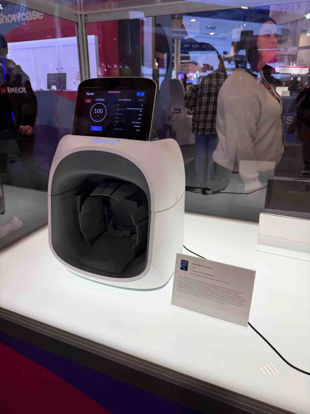 Tiposi在CES展出的MWI Brain Scanner是一套可在数分钟内完成数据采集与分析流程的便携式微波脑成像系统。与动辄数百公斤、需固定安装的CT或MRI相比,这台仅8公斤的设备被设计为支持在医院、救护车、机场及现场急救等多种环境下使用。