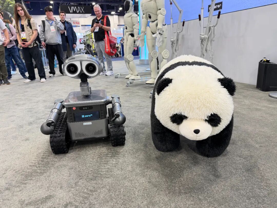 乐享科技此次在CES上发布了具身智能品牌元点智能,这次亮相的有身高1.65米的大人形机器人Jupiter、家庭具身智能机器人M1、履带式机器人W1、1.1米左右的小型人形机器人A1、以及彩蛋产品具身智能熊猫。