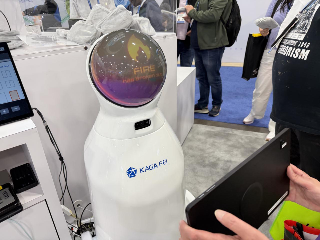 KAGA Fei是由日本KAGA电子集团推出的一款小型服务型机器人,外形以“圆润 + 大眼”的幼态风格为主。它具备灾害预警能力——机器人内置多类环境传感器,能持续监测温度、烟雾、空气成分和振动等指标,一旦数据出现异常波动,它会在现场发出提示,并同步给后台系统,让负责人员及时处理。