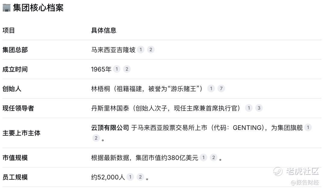 云顶集团是马来西亚规模最大的综合度假村和娱乐企业之一,世界五百强!