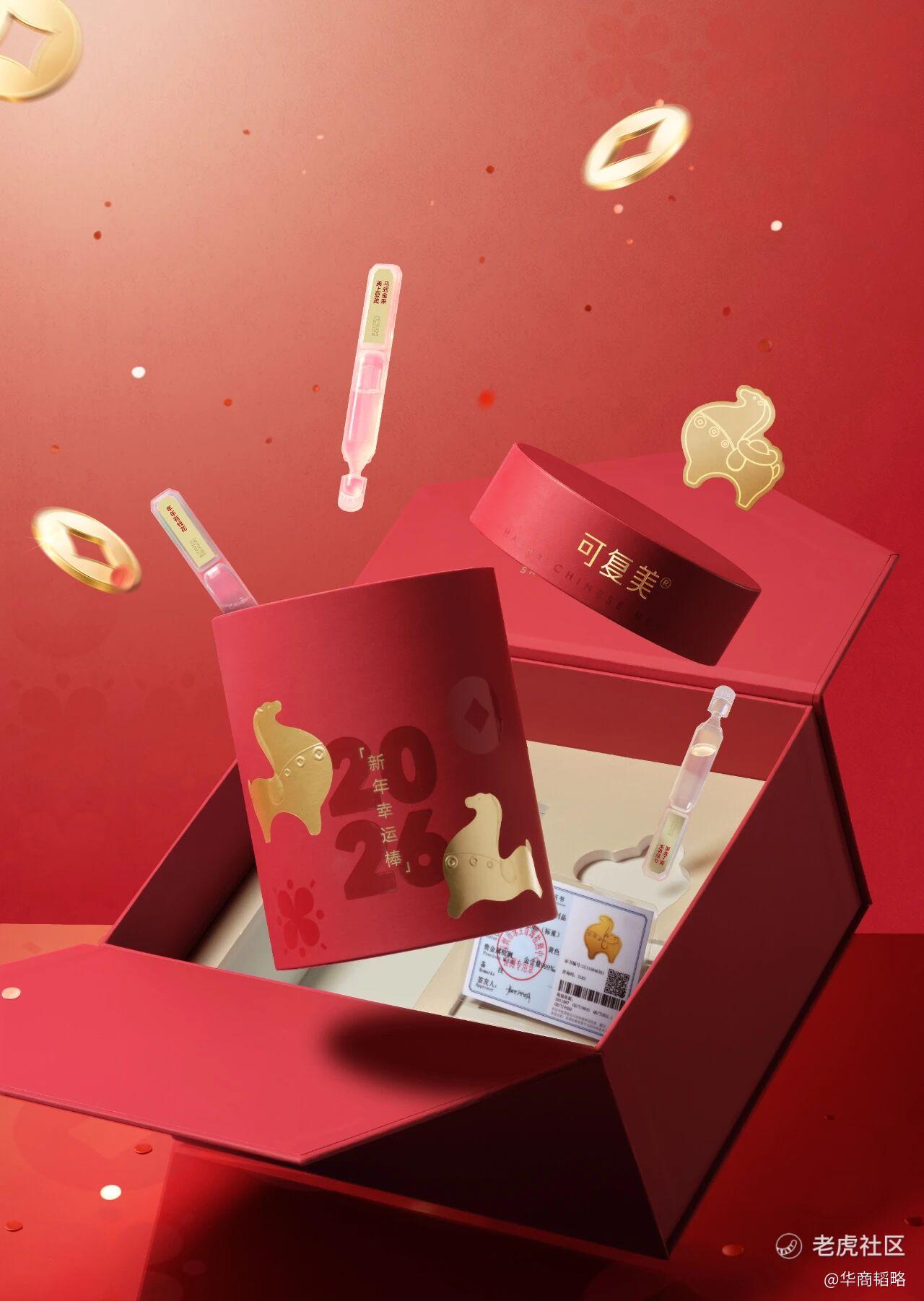 这个融合了祝福、关怀、功能和价值的组合,就是可复美联合珠宝品牌潮宏基,在2026年共同推出的“可复美×潮宏基定制黄金新年礼盒”。