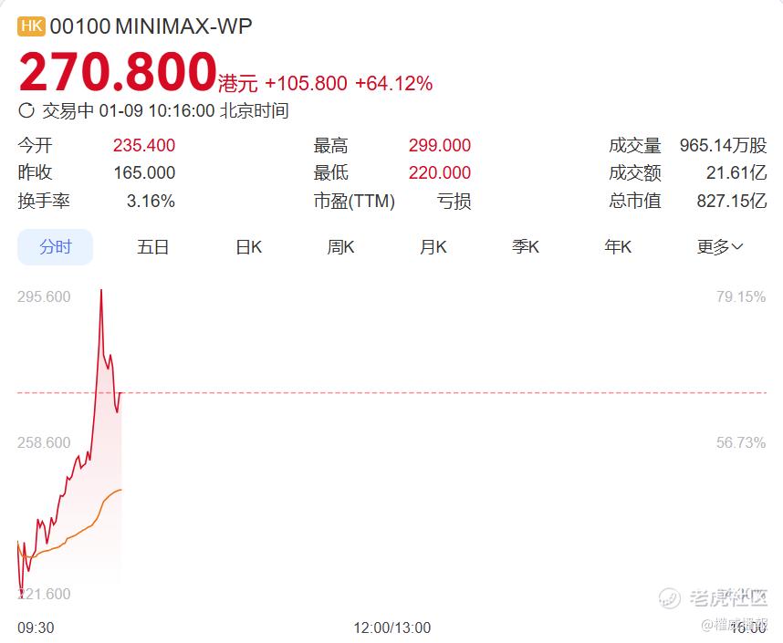 2026年1月9日,港交所的铜锣为MiniMax而鸣,市值超800亿港元。